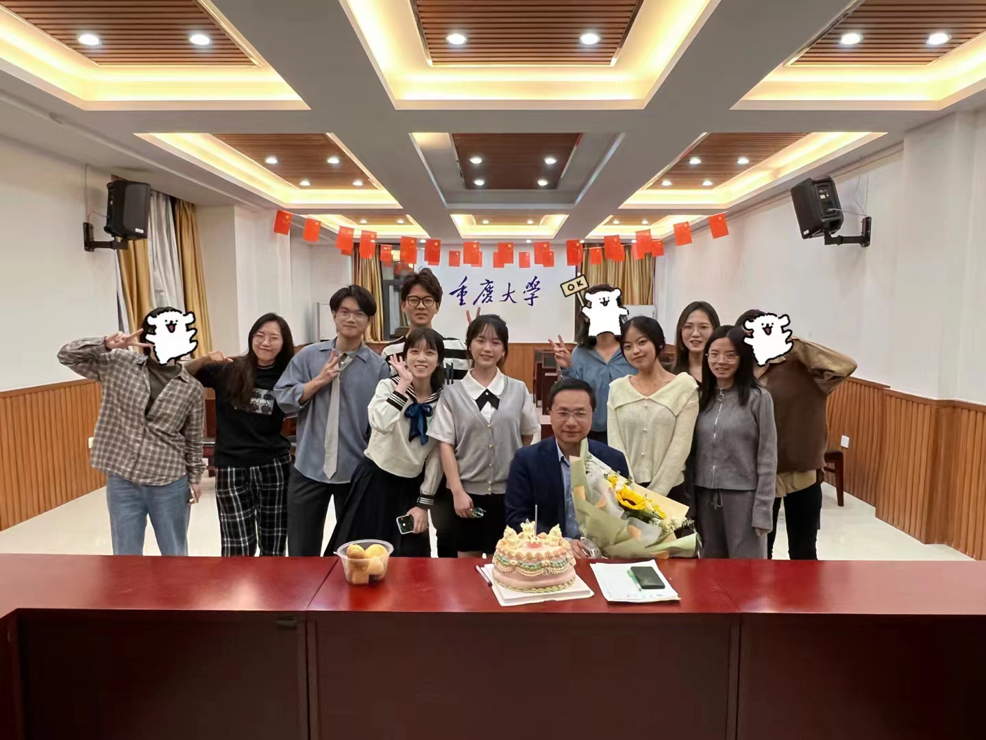 Attention!!!在村长生日的前一天,趁着沙龙的机会羊羊们偷偷为村长准备了生日惊喜。在组会议程结束后,门外等候已久的博士生师姐以及研三师姐加入进来,大家拿出了精心准备的蛋糕和礼物,为村长唱生日歌、献上生日祝福。祝我们的村长永远年轻、科研顺利、生活美满,羊村学术共同体做大做强!