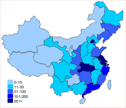 重庆 | 66 | 2.10% | 新疆 | 1 | 0.03% |