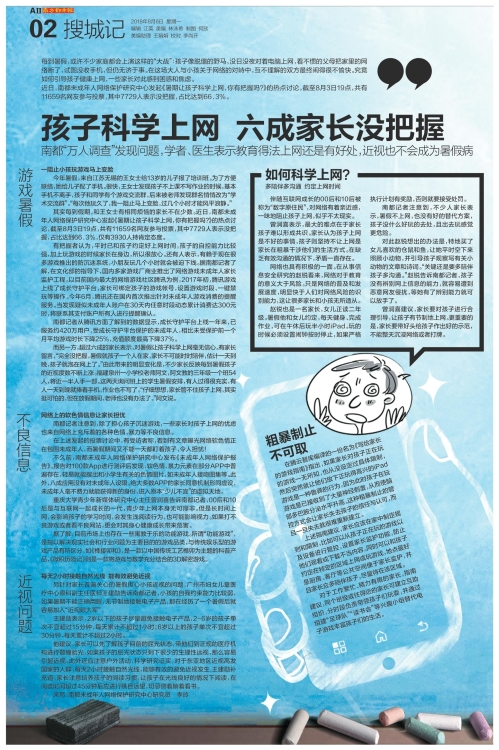 南都记者注意到,除了担心孩子沉迷游戏,一些家长对孩子上网的忧虑也来自网络上充斥着的各种色情、暴力等不良信息。