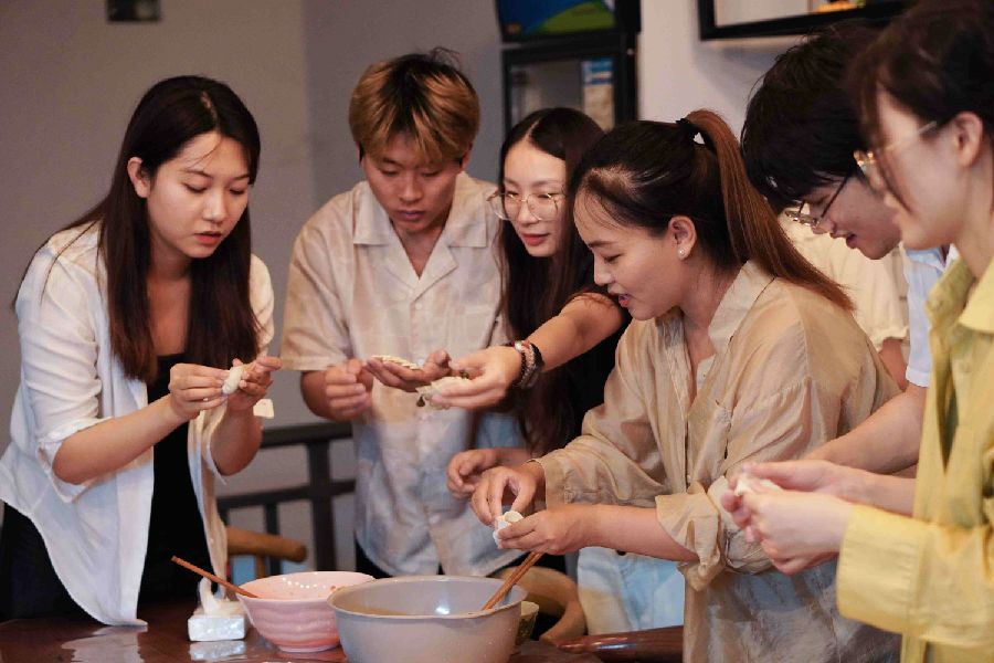 橘黄色的灯光下,小羊们一起相互学着包饺子,尽管捏出的形状各异,但大家脸上的笑容都是灿烂美好的。