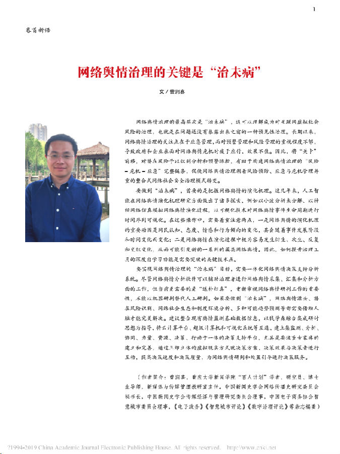 《中国传媒科技》网络舆情治理的关键是“治未病”